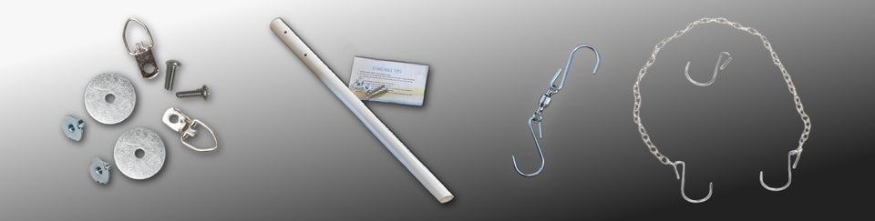 Our own hanging systems to give you a variety of ways to display your art. You can even make them swivel or be on a garden stake.