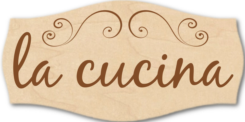 One La Cucina plaque made of high quality maple wood, 1/4" thick, ready to hang with sawtooth.